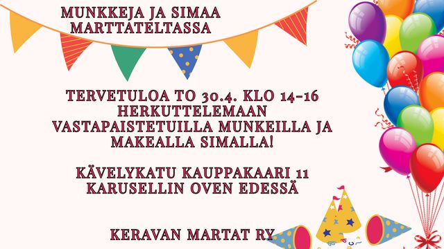 Tästä uutisesta löydät menovinkit vapun viettoon Keravalla. Lisäksi kokosimme kaupungin vapaa-ajan palveluiden ja asiointipisteen vapun aukioloajat samaan uutiseen.